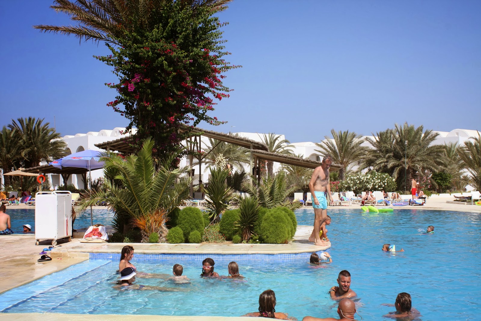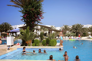 Onze vakantie in Club Rimel Beach viel goed mee, het weer was prachtig, het strand was mooi (wit zand), het eten was lekker. Enkel het zwembad viel een beetje tegen. Het zwembad zelf was ontzettend diep (gaande van 1m50 tot 3m!) en rond het zwembad waren toch te weinig ligbedden om iedereen een plaatsje te geven die dat wou. Maar ik stond vroeg op om zeker te zijn van een plaatsje, en zo was dat probleem voor ons ook van de baan. In de namiddag deed ik bijna elke dag mee met de les Zumba. Ong. 45 minuten dansen en bewegen volgens de Zumbaritmes. Hier deed veel volk (voornamelijk vrouwen) aan mee en was zeer tof. Kan ook niet anders met zo'n knappe leraar ;) En zo sleten we onze dagen, aan het zwembad, in het zwembad, aan het strand, in de zee, op het beachterras. Zalige tijden, in een superheerlijk klimaat. Ooh wat mis ik dat klimaat. Ons weekje Djerba zat er dus snel op.